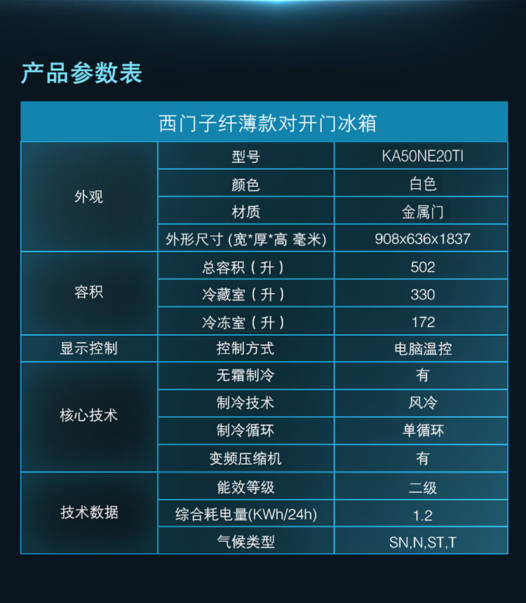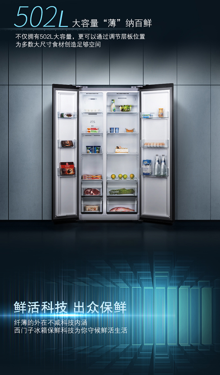 咨询:西门子(SIEMENS) 502升 对开门冰箱 风冷无霜 KA