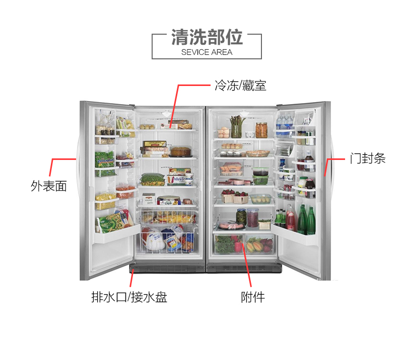 由专业的清洗人员上门,对冰箱进行高温蒸汽消毒、深度清洗、杀菌除异味,有效清除冰箱里隐藏的致病菌